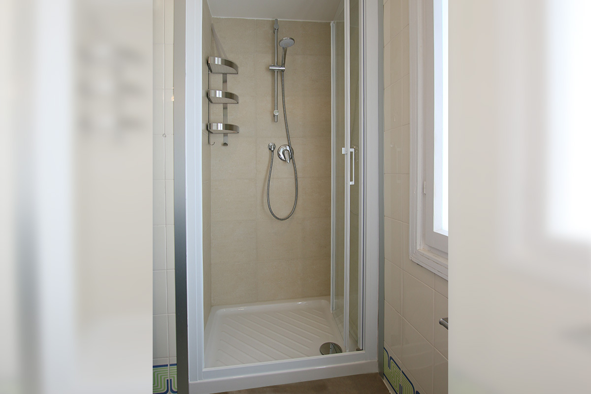 - Bagno con doccia e asciugacapelli.